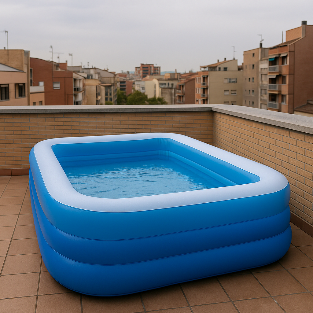 Segons la normativa municipal, qualsevol piscina, fixa o desmuntable, requereix una llicència urbanística d’obra menor. Això es deu al risc que suposa sobrecarregar la terrassa o balcó, ja que l’aigua pesa molt i pot superar fàcilment els límits estructurals de l’edifici.